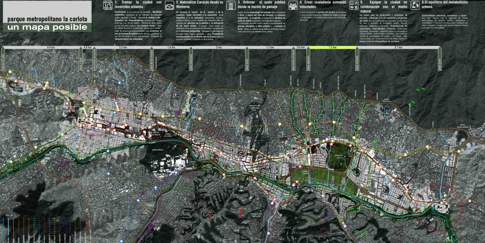 Tramar la ciudad con recorridos urbanos, naturalizarla desde su memoria, ordenar el suelo público desde la noción de paisaje, fomentar la creación de ciudadanía a través de la suma de voluntades, equipamiento de la ciudad en combinación con el medio natural y el equilibrio del metabolismo urbano son los ejes principales que Paisaje Topográfico (LC0020) y Un Mapa Posible (LC 0086A) comparten en su propuesta.