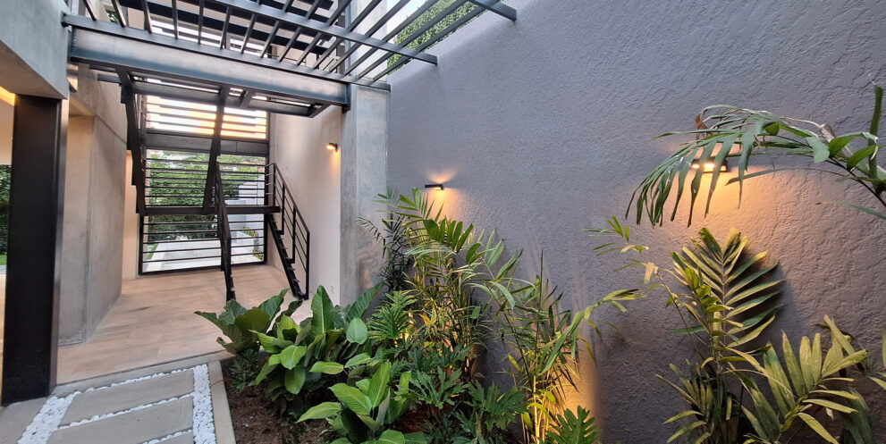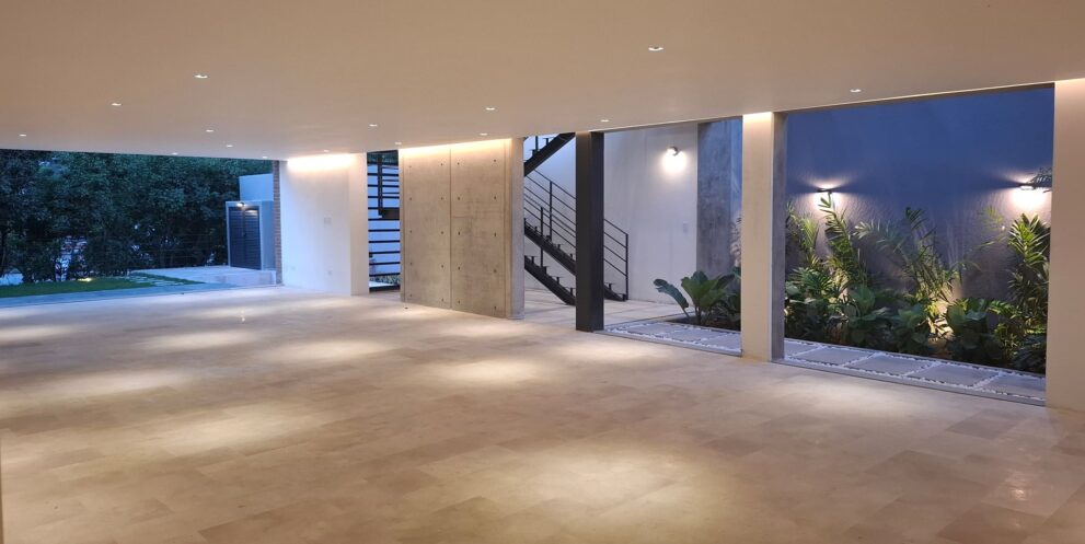 Se realizaron los refuerzos estructurales para lograr la mayor continuidad espacial interna y poder alcanzar un segundo piso en el sector norte de la vivienda. Un elemento espacial fundamental fue la creación de un patio interno que permite el ingreso de luz, vistas del cielo y ventilación a la casa.